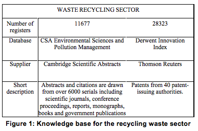 Rio, R.; Cilleruelo, E. (2010): Discovering technologies using techmining: the case of waste recycling. The 6th International Scientific Conference “Business and Management 2010. Vilnius, Lithuania 13-14 May. Selected Papers. Vilnius Gediminas Technical University Publishing House “Technika”, Vilnius, 2010, 950-955.. doi:10.3846/bm.2010.127