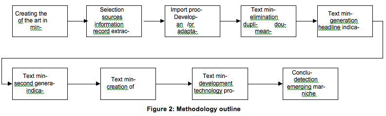 The foresight method developed in this analysis is innovative because it combines qualitative knowledge and quantitative data allowing the conclusions from the individual analysis to converge into a variety of industrial scenarios. Figure 2 shows an outline of the methodology. It retrieves and downloads the information on these two sectors using the Derwent Patents and Environmental Abstracts databases. The downloaded information is analysed using text mining techniques.